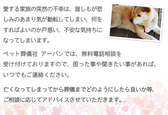 アーバンペット葬儀社が心を込めてサポートいたします。